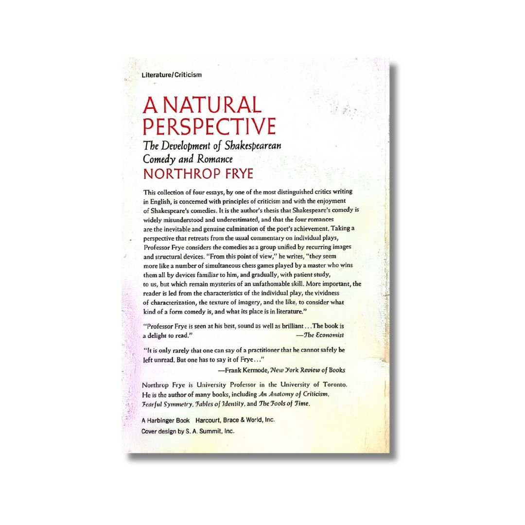 taking a perspective that retreats from the usual commentary on individual plays, Professor Frye considers the comedies as a group unified by recurring images and structural devices. "From this point of view," he writes, "they seem more like a number of simultaneous chess games played by a master who wins them all by devices familiar to him, and gradually, with patient study, to us, but which remain mysteries of an unfathomable skill.
