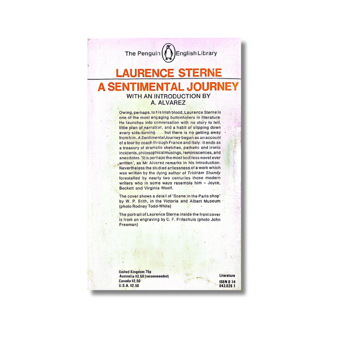 a novel without a plot, a journey without a destination. It records the adventures of the amiable Parson Yorick, as he sets off on his travels through France and Italy, relishing his encounters with all manner of men and women—particularly the pretty ones.