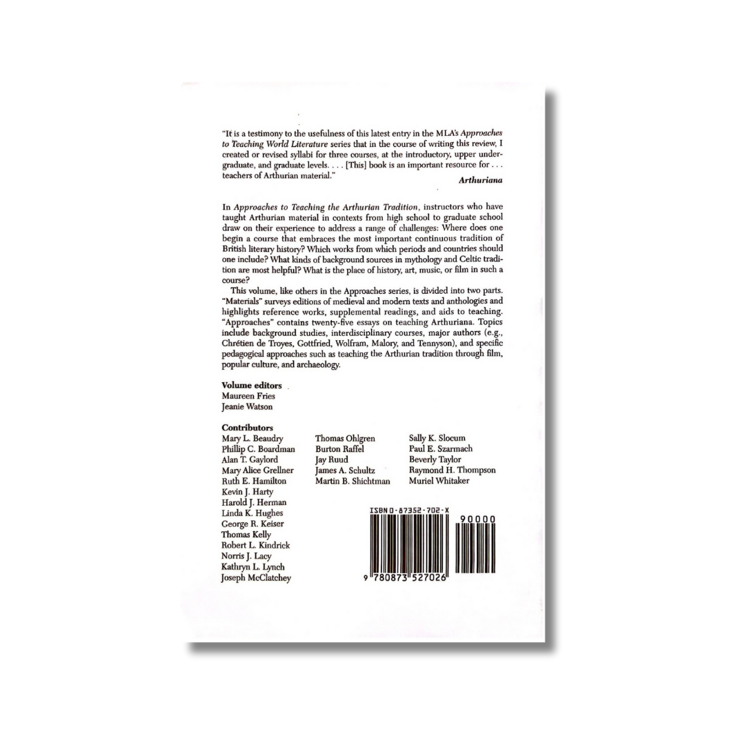 in Approaches to teaching the arthurian tradition, instructors who have taught Arthurian material in contexts from high school to graduate school draw on their experience to address a range of challenges: Where does one begin a course that embraces the most important continuous tradition of British literary history? Which works from which periods and countries should one include? What kinds of background sources in mythology and Celtic tradition are most helpful? What is the place of history, art, music, or film in such a course?