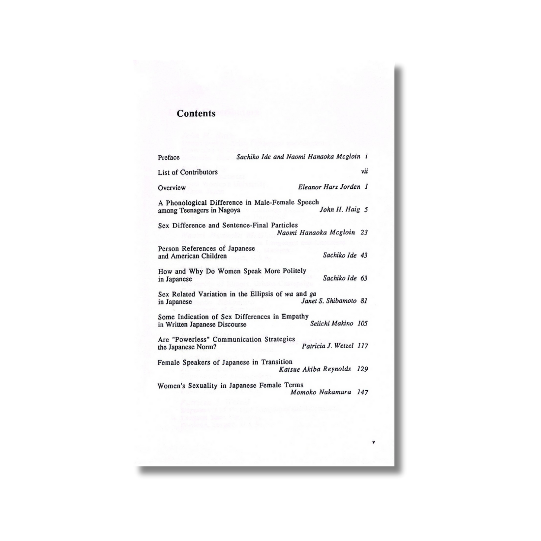 contains an overview and nine separate papers by eight contributors that discuss women's language in Japan in its broadest terms. As described by the editors in the Preface, the methodological orientations and theoretical perspectives taken by contributors vary ―from sociolinguistic analysis, to discourse/pragmatic analysis and to sociological/feminist writings.