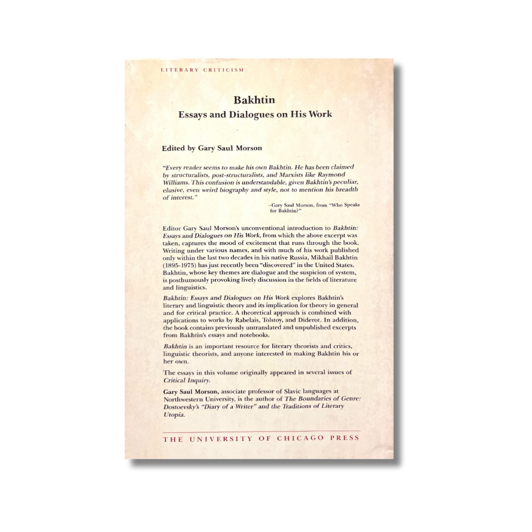 Bakhtin: Essays and dialogues on his work explores Bakhtin´s liteary and linguistic theory and its implication for the theory in general and for critical practice. A theoretical approach is combined with applications to works by Rebelais, Tolstoy, and Diderot. In addition, the book contains previously untranslated and unpublished excerpts from the Bakhtin´s essays and notebooks.