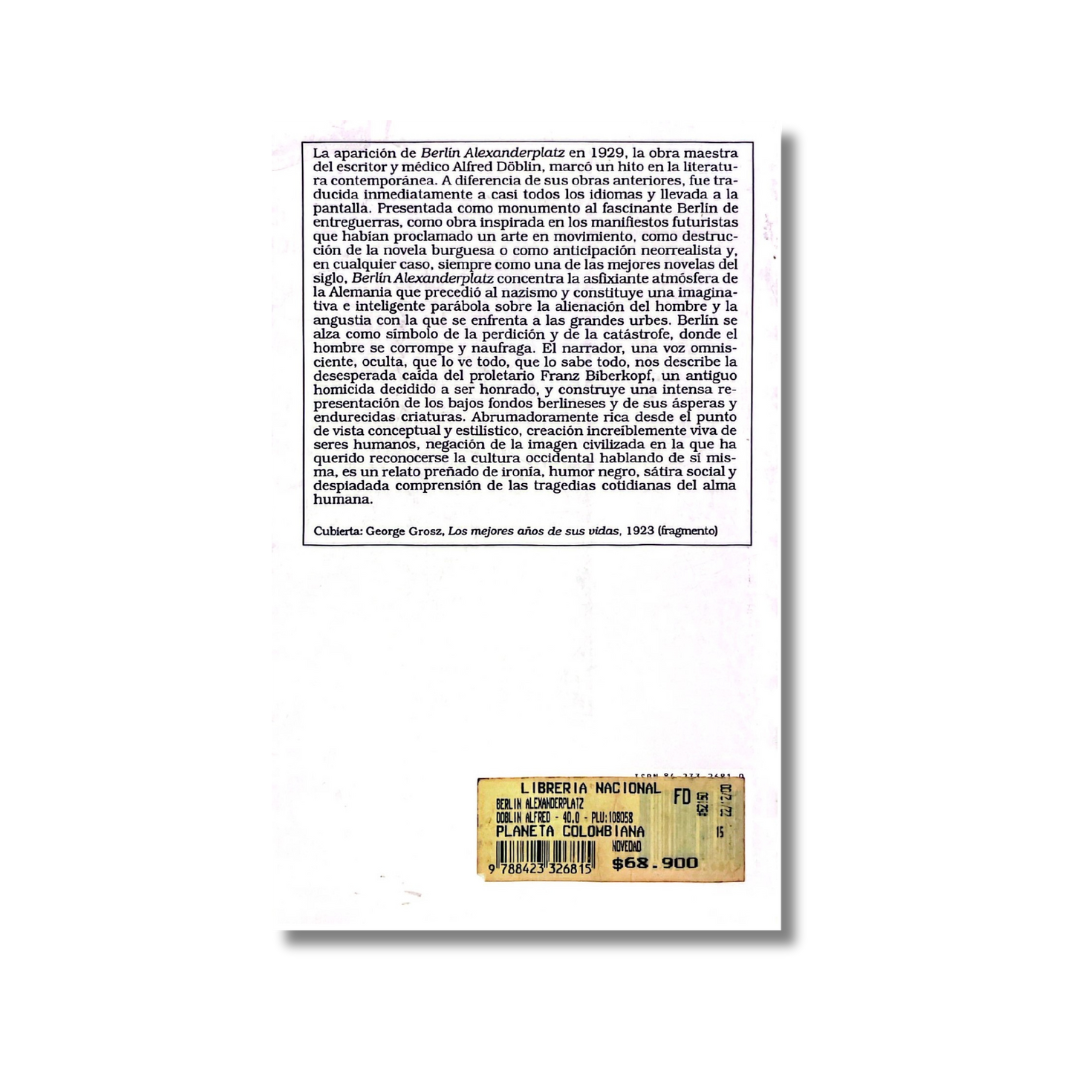 esta obra aparece en 1929. Su éxito es extraordinario y, en pocos años, alcanza cuarenta y cinco ediciones y se traduce a varios idiomas. La novela se consideró una exaltación de Berlín, ciudad que el autor, por su profesión de médico, conocía muy bien. Los ojos de Döblin (y sus cuadernos) registran todos los detalles de la geografía berlinesa, pero como narrador omnisciente, Döblin interviene en la acción y comenta lo que ocurre. Fondo y forma se funden en un libro desconcertante y abierto a la interpretación.