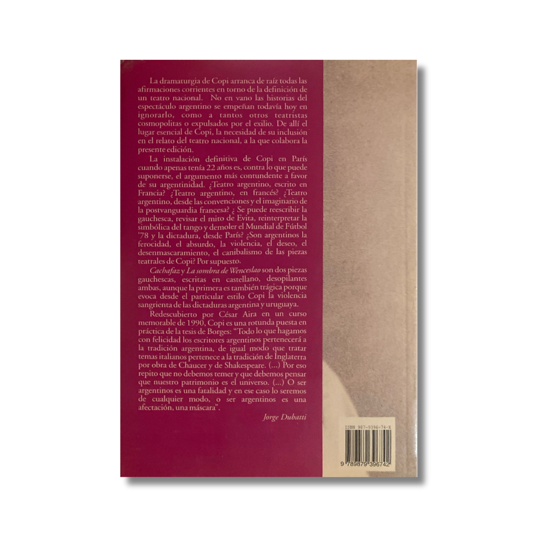 Cachafaz y La sombra de Wenceslao son dos piezas gauchescas, escritas en castellano, desopilantes ambas, aunque la primera es también trágica porque porque evoca desde el particular estilo Copi la violencia sangrienta de las dictaduras argentina y uruguaya.