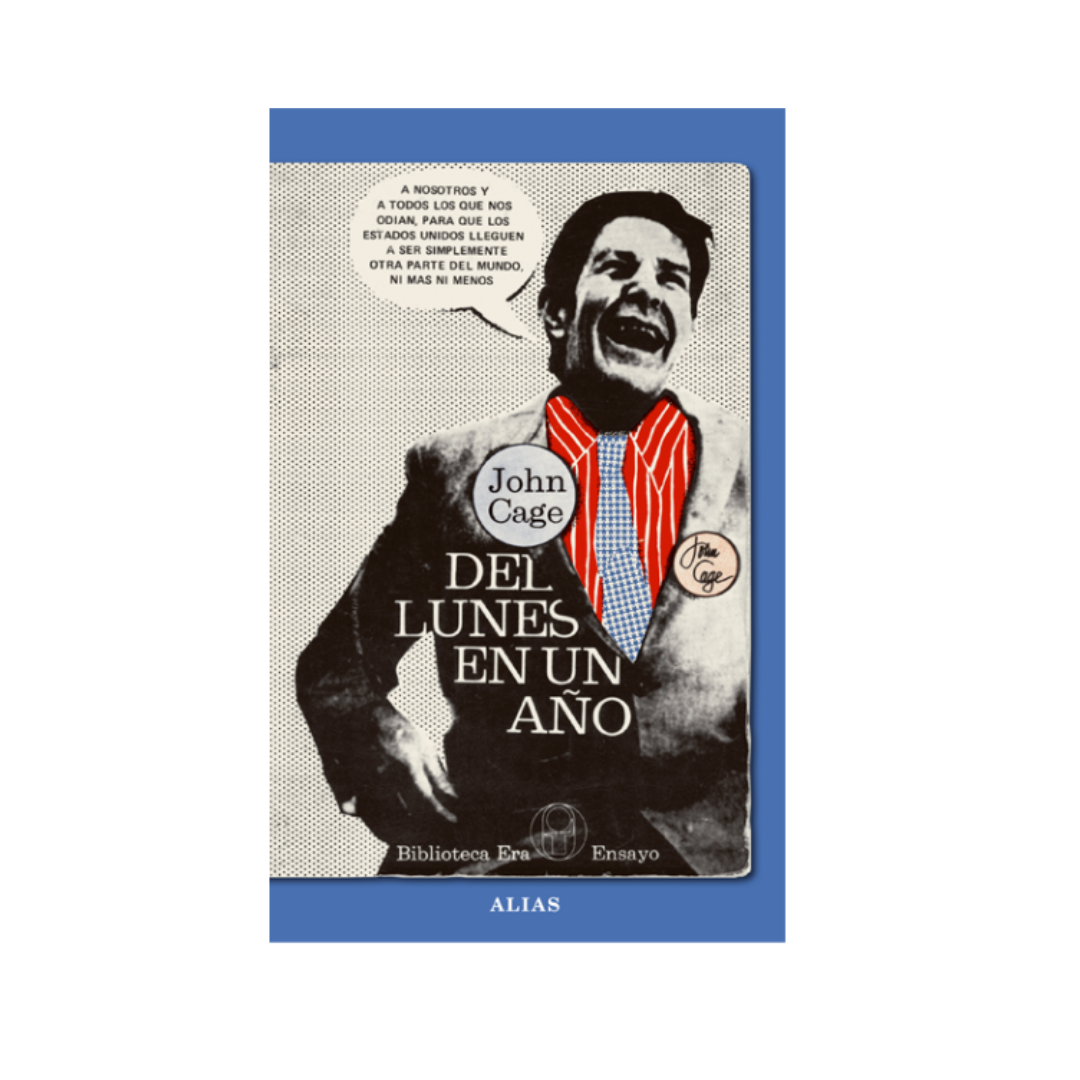 Un sábado de 1966, se reúnen seis personas en un pequeño restaurante de Newburgh a orillas del río Hudson en la ciudad de Nueva York. Entre ellas, el compositor estadounidense John Cage, el poeta y ensayista Octavio Paz, el gran arquitecto Buckminster Fuller y otros personajes de la época. Mientras comen, la conversación los lleva a prometer reunirse nuevamente en México. Paz perspicazmente propone un plan: “de este lunes que sigue, en un año”. Originalmente publicado por Wesleyan University Press en 1969, Del lunes en un año rápidamente se convirtió en pieza clave dentro de la larga lista de títulos realizados por el compositor. Su contenido se compone de veintiún textos, entre apuntes, ensayos, conferencias y entradas de diario que el artista, músico y compositor escribió entre los años de 1961 y 1967. Esta versión es una reedición de la traducción realizada por Editorial Era, diseñada por Vicente Rojo hacia el año de 1974.