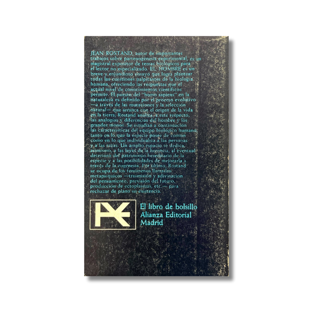 Jean Rostand, autor de importantes trabajos sobre partenogenesis experimental, es un magistral expositor de temas biologicos para el lector no especializado. El hombre es un breve y enjundioso ensayo que logra plantear todas las cuestiones palpitantes de la biología humana, ofreciendo las respuestas que el actual nivel de conocmientos científicos permite.