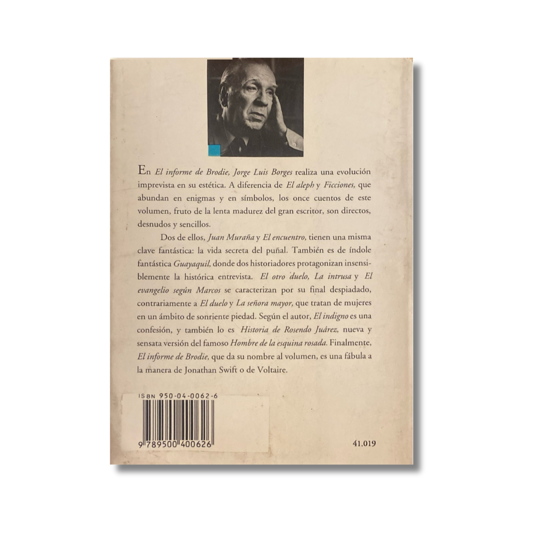 En El informe de Brodie, Jorge Luis Borges realiza una evolución imprevista en su estética. A diferencia de El Aleph y Ficciones, que abundan en enigmas y en símbolos, los once cuentos de este volumen, fruto de la lenta madurez del gran escritor, son directos, desnudos y sencillos.