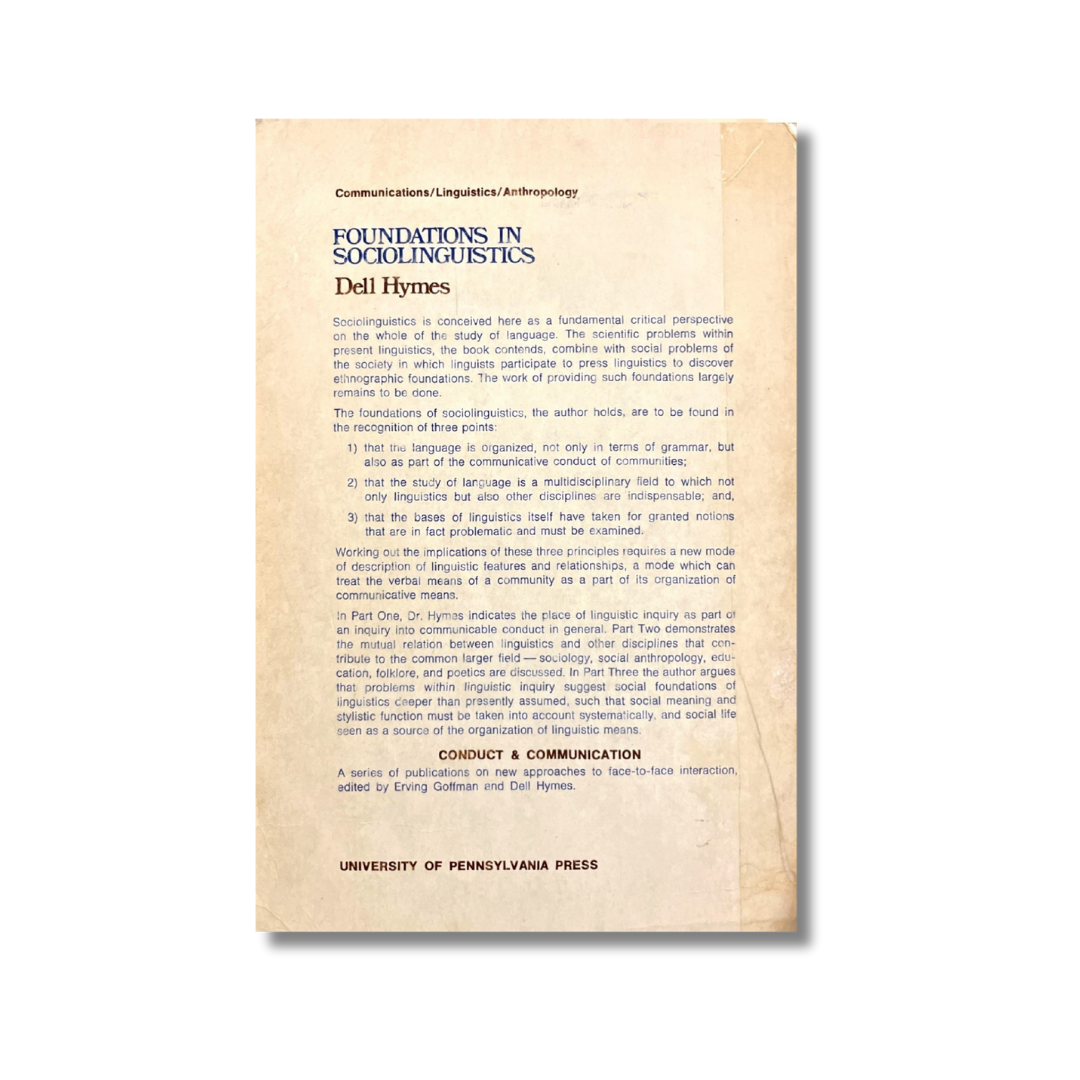 Sociolinguistics is conceived here as a fundamental critical perspective on the whole of the study of language. The scientific problems within present linguistics, the book contends, combine with social problems of the society in which linguists participate to press linguistics to discover ethnographic foundations. The work of providing such foundations largely remains to be done. Working out the implications of these three principles requires a new mode of description of linguistic features and relationships, a mode which can treat the verbal means of a community as a part of its organization of communicative means.
