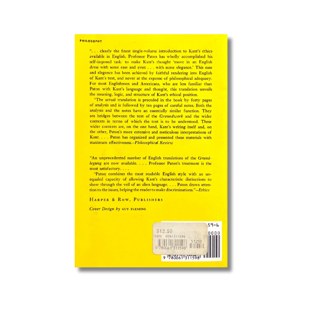 thought "move in and English dress ith some ease and even... with some elegance."This ease and elegance has been achieved by faithful rendering into English of Kant´s text,a nd never at the expense of philosophical adequacy- For most Englishmen and Americans, who are less familiar than Paton with Kant´s language and thought, this translation unveils the meaning, logic, and structure of Kant´s ethical position.