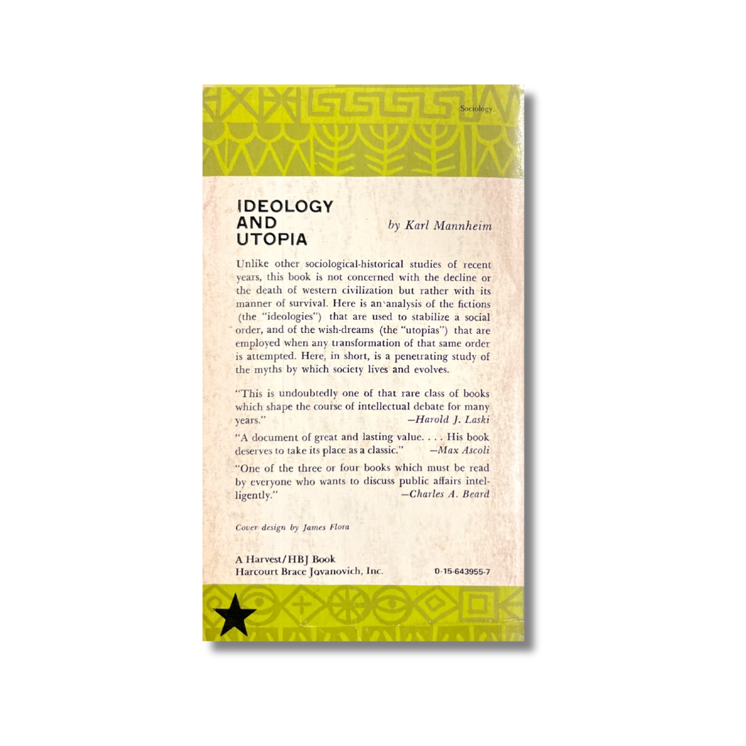 Unlike other sociological-historical studies of recent years, this book is not concerned with the decline or the death of western civilization but rather with its manner of survival. Here is an analysis of the fictions (the "ideologies") that are used to stabilized a social order, and of the wish-dreams (the "utopias") that are employed when any transformation of the same order is attempted. Here, in short, is a penetrating study of the myths by which society lives and evolves.