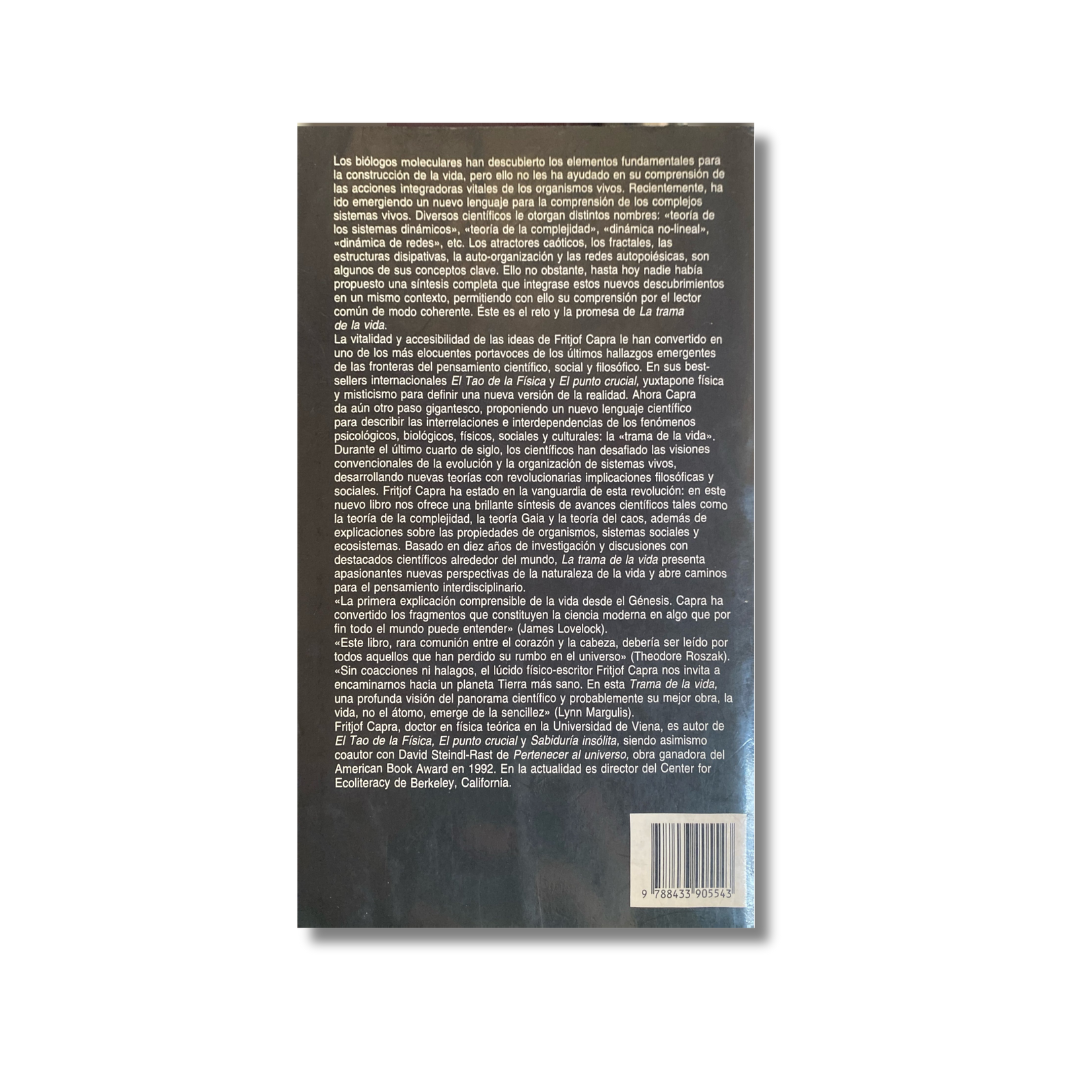 Recientemente, ha ido emergiendo un nuevo lenguaje para la comprensión de los complejos sistemas vivos, pero hasta hoy nadie había propuesto una síntesis completa que integrase estos nuevos descubrimientos en un mismo contexto, permitiendo con ello su comprensiónpor el lector común de modo coherente. Éste es el reto y la promesa de La trama de la vida. La vitalidad y accesibilidad de las ideas de Fritjof Capra le han convertido en uno de los más elocuentes portavoces de los últimos hallazgos emergentes de las fronteras del pensamiento científico, social y filosófico. Ahora Capra da otro paso gigantesco, proponiendo un nuevo lenguaje científico para describir las interrelaciones e interdependencias de los fenómenos psicológicos, biológicos, físicos, sociales y culturales. Basado en diez años de investigación y discusiones con destacados científicos alrededor del mundo, Capra presenta apasionantes perspectivas de la naturaleza de la vida y abre caminos para el pensamiento interdisciplinario. "La mejor aproximación contemporánea a una visión unificada de la materia, la muerte y la vida... Una seductora invitación a redescubrir nuestro lugar en el conjunto del universo" (Jordi Pigem, La Vanguardia); "Un libro recomendable para científicos excesivamente propensos a pensar sólo