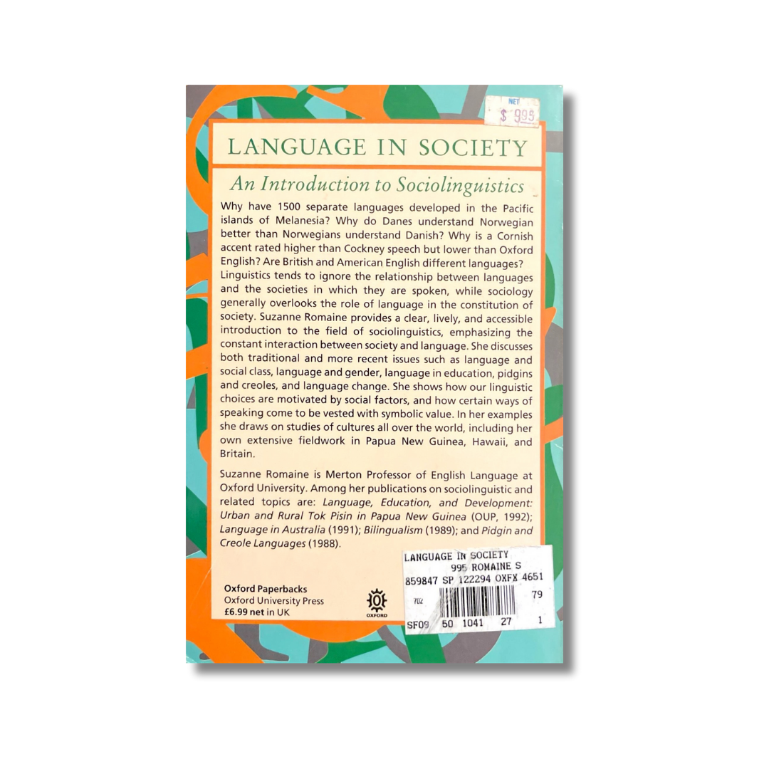 Linguistics tends to ignore the relationship between languages and the societies in which they are spoken, while sociology generally overlooks the role of language in the constitution of society. In this book Suzanne Romaine provides a clear, lively, and accessible introduction to the field of sociolinguistics and emphasizes the constant interaction between society and language. She shows how our linguistic choices are motivated by social factors, and how certain ways of speaking come to be vested with symbolic value, drawing from evidence from studies of cultures and languages all over the world.