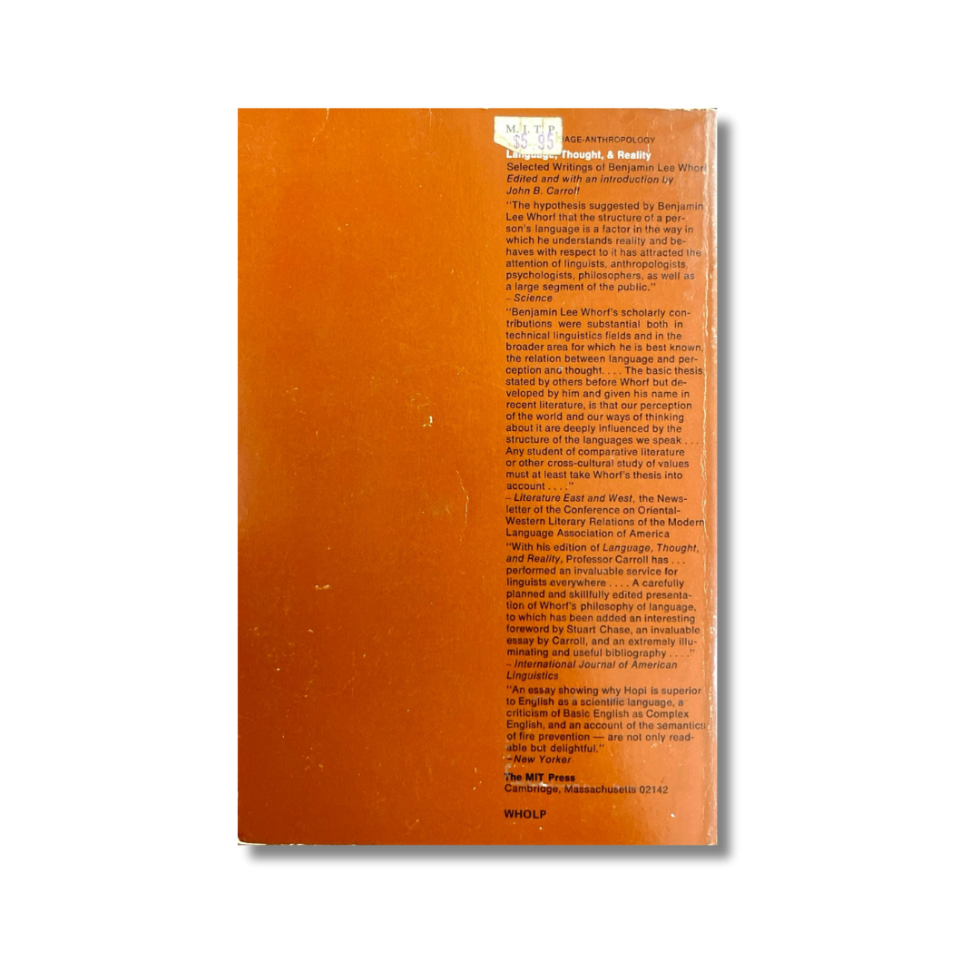 The pioneering linguist Benjamin Whorf (1897–1941) grasped the relationship between human language and human thinking: how language can shape our innermost thoughts. His basic thesis is that our perception of the world and our ways of thinking about it are deeply influenced by the structure of the languages we speak. The writings collected in this volume include important papers on the Maya, Hopi, and Shawnee languages as well as more general reflections on language and meaning.