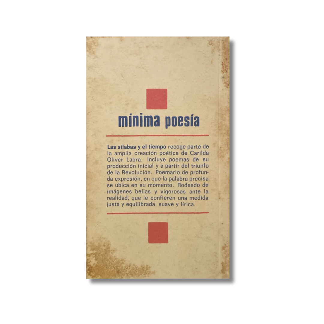 Las sílabas y el tiempo recoge parte de la amplia creación poética de Carilda Oliver Labra. Incluye poemas de su producción inicial y a partir del triunfo de la revolución. Poemario de profunda expresión, en que la palabra precisa se ubica en su momento. Rodeado de imágenes bellas y vigorosas ante la realidad, que le confieren una medida justa y equilibrada, suave y lírica.