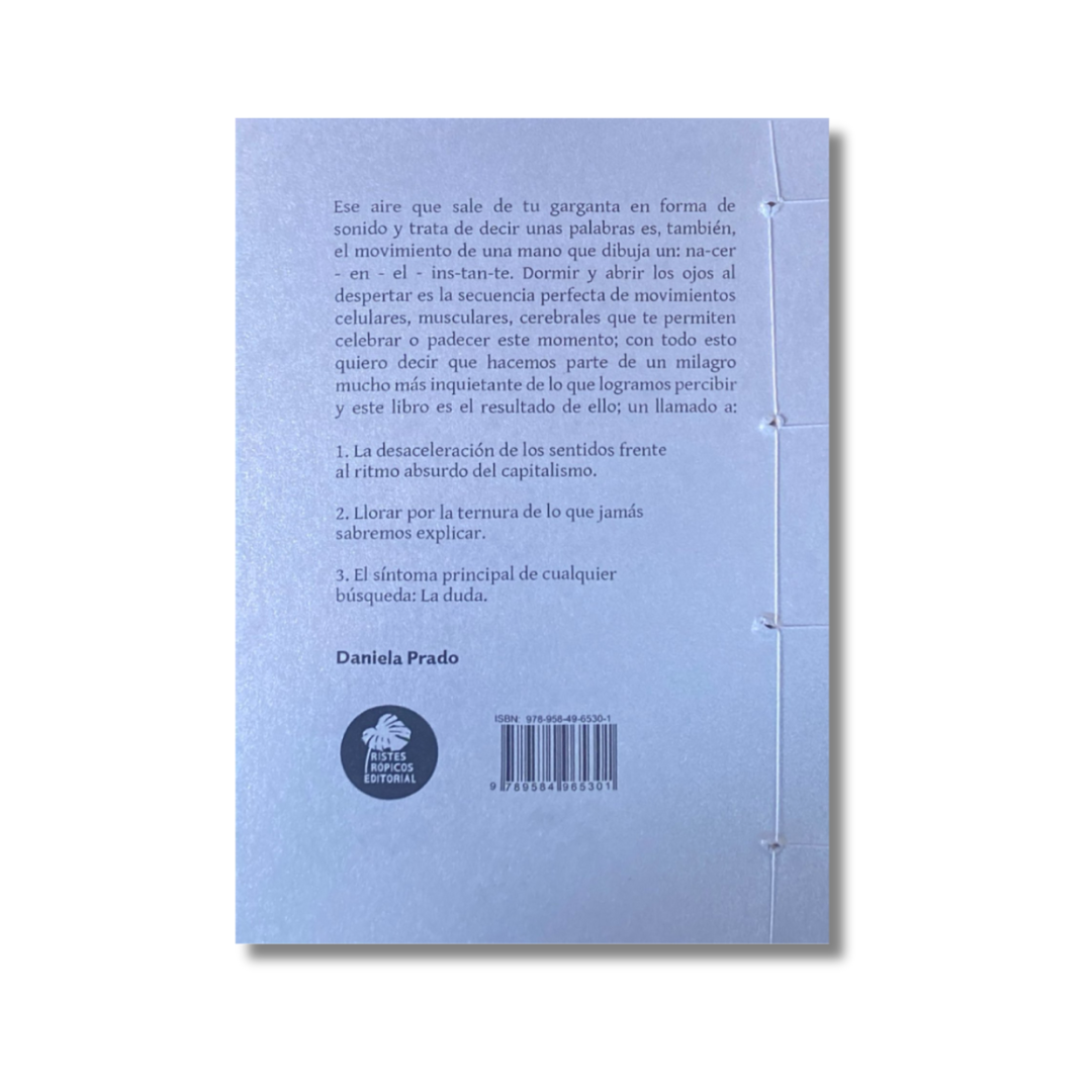 Ese aire que sale de tu garganta en forma de sonido y trata de decir unas palabras es, también, el movimiento de una mano que dibuja un: na-cer - en - el - ins-tan-te. Dormir y abrir los ojos al despertar es la secuencia perfecta de movimiento celulares,musculares, cerebrales que te permiten celebrar o padecer este momento; con todo esto quiero decir que hacemos parte de un milagro mucho más inquietante de lo que logramos percibir y este libro es el resultado de ello; un llamado a: