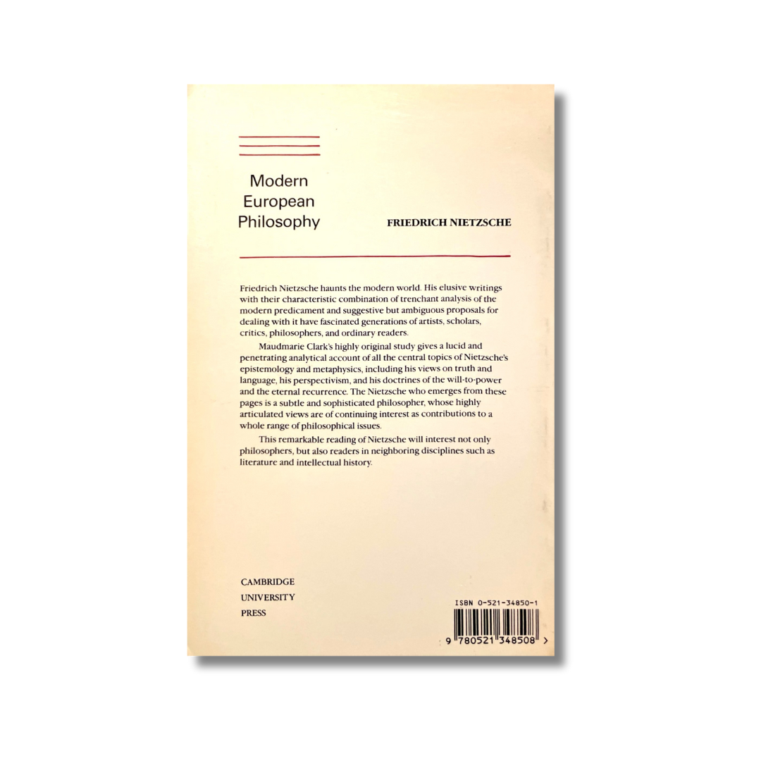 Friedrich Nietzsche haunts the modern world. His elusive writings with their characteristic combination of trenchant analysis of the modern predicament and suggestive but ambiguous proposals for dealing with it have fascinated generations of artists, scholars, critics, philosophers, and ordinary readers. Maudemarie Clark's highly original study gives a lucid and penetrating analytical account of all the central topics of Nietzsche's epistemology and metaphysics, including his views on truth and language, his perspectivism, and his doctrines of the will-to-power and the eternal recurrence. The Nietzsche who emerges from these pages is a subtle and sophisticated philosopher, whose highly articulated views are of continuing interest as contributions to a whole range of philosphical issues. This remarkable reading of Nietzsche will interest not only philosophers, but also readers in neighboring disciplines such as literature and intellectual history.