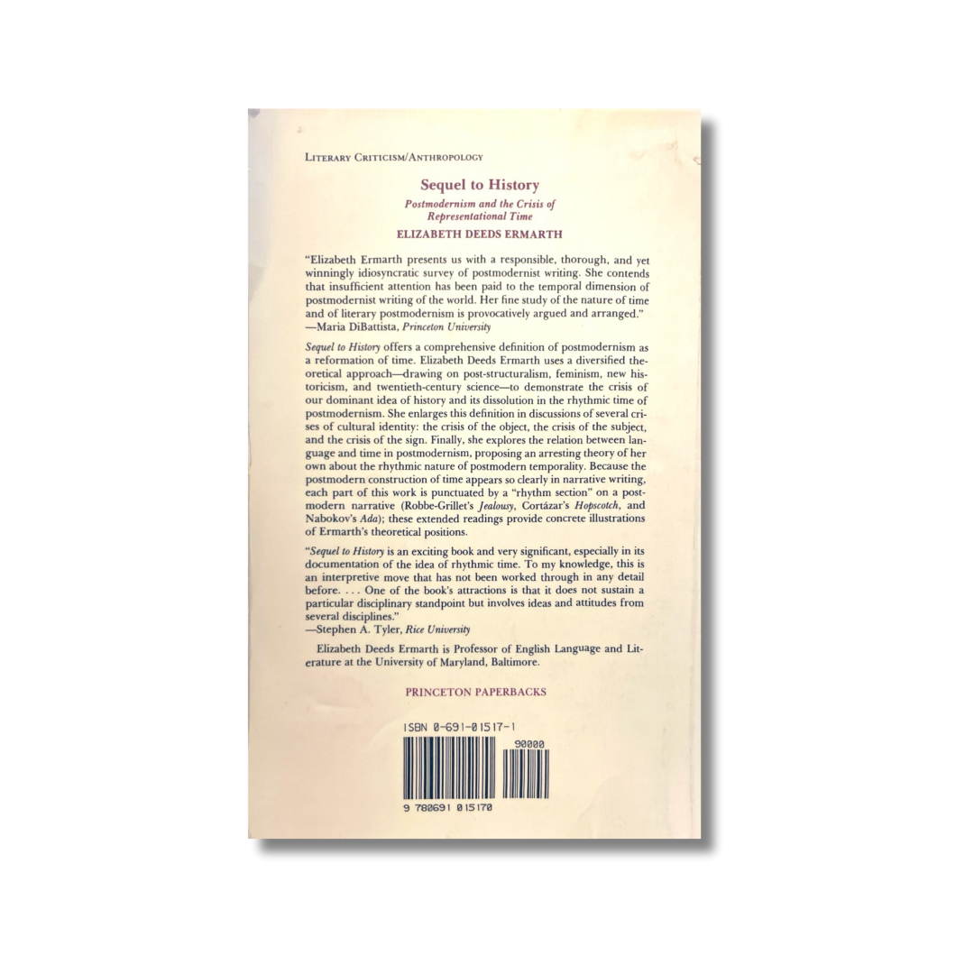 Sequel to History offers a comprehensive definition of postmodernism as a reformation of time. Elizabeth Deeds Ermarth uses a diversified theoretical approachdrawing on post-structuralism, feminism, new historicism, and twentieth-century scienceto demonstrate the crisis of our dominant idea of history and its dissolution in the rhythmic time of postmodernism. She enlarges this definition in discussions of several crises of cultural identity: the crisis of the object, the crisis of the subject, and the crisis of the sign. Finally, she explores the relation between language and time in post-modernism, proposing an arresting theory of her own about the rhythmic nature of postmodern temporality. Because the postmodern construction of time appears so clearly in narrative writing, each part of this work is punctuated by a “rhythm section” on a postmodern narrative (Robbe-Grillet’s Jealousy, Cortezar’s Hopscotch, and Nabokov’s Ada); these extended readings provide concrete illustrations of Ermarth’s theoretical positions. As in her critically acclaimed Realism and Consensus in the English Novel, Ermarth ranges across disciplines from anthropology and the visual arts to philosophy and history. For its interdisciplinary character and its lucid definition of postmodernism, Sequel to History will appeal to all those interested in the humanities.