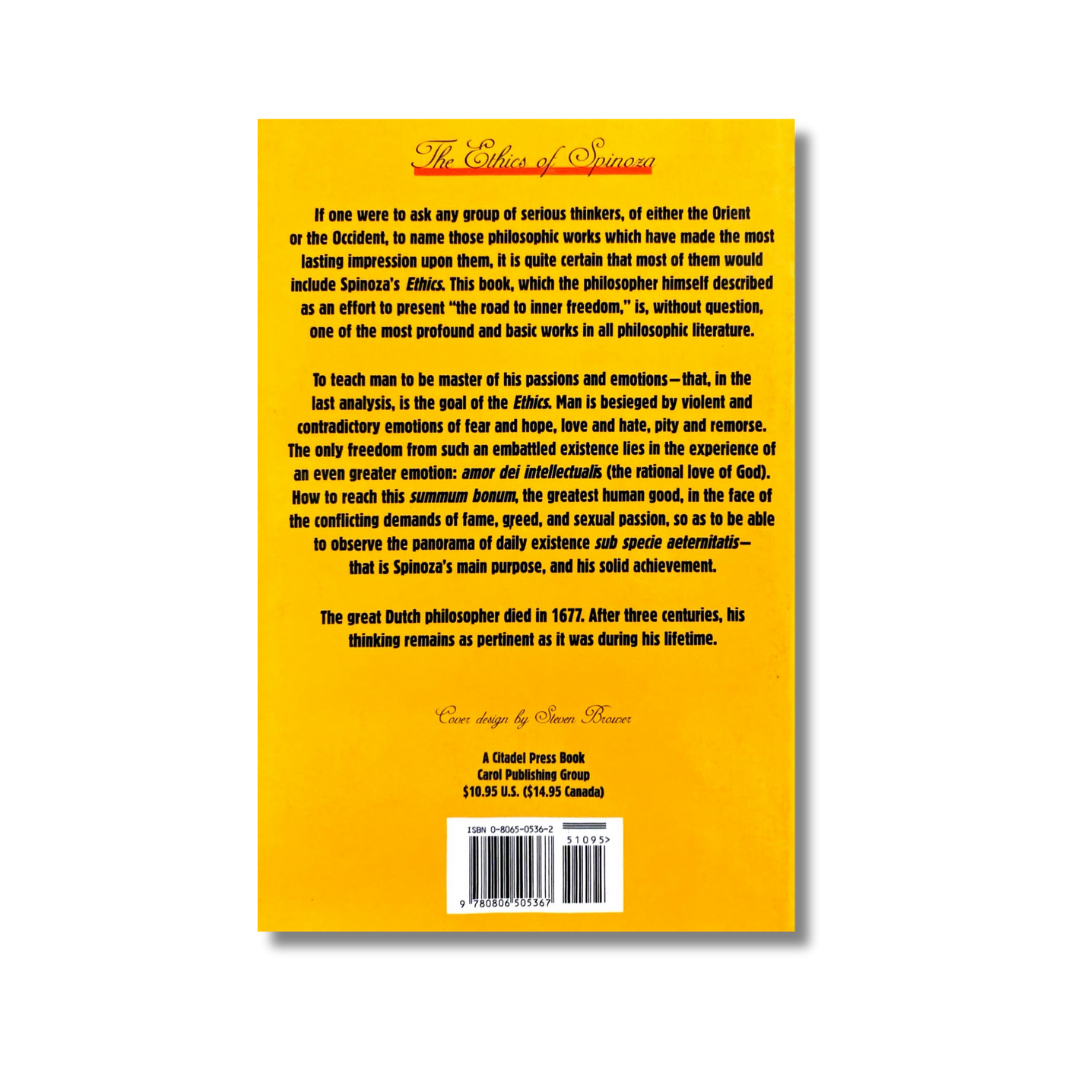 If one were to ask any group of serious thinkers, of either the Orient or the Occident, to name those philosophic works which have made the most lasting impression upon them, it is quite certain that most of them would include Spinoza's Ethics. This book, which the philosopher himself described as an effort to present "the road to inner freedom," is, without question, one of the most profound and basic works in all philosophic literature.