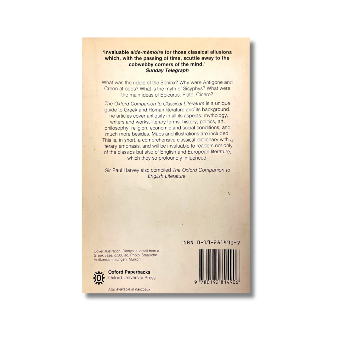 The Oxford Companion to Classical Literature is a unique guide to Greek and Roman literature and its background. The articles cover antiquity in all its aspects: mithology, writers and works, literary forms, history, politics, art, philosophy, religion, economic and social conditions, and much more besides. Maps and illustrations are included. This is, in short, a comprehensive classical dictionary with a literary emphasis, and will be invaluable to readers not only of the classics but also of English and European literature, which they so profoundly influenced.