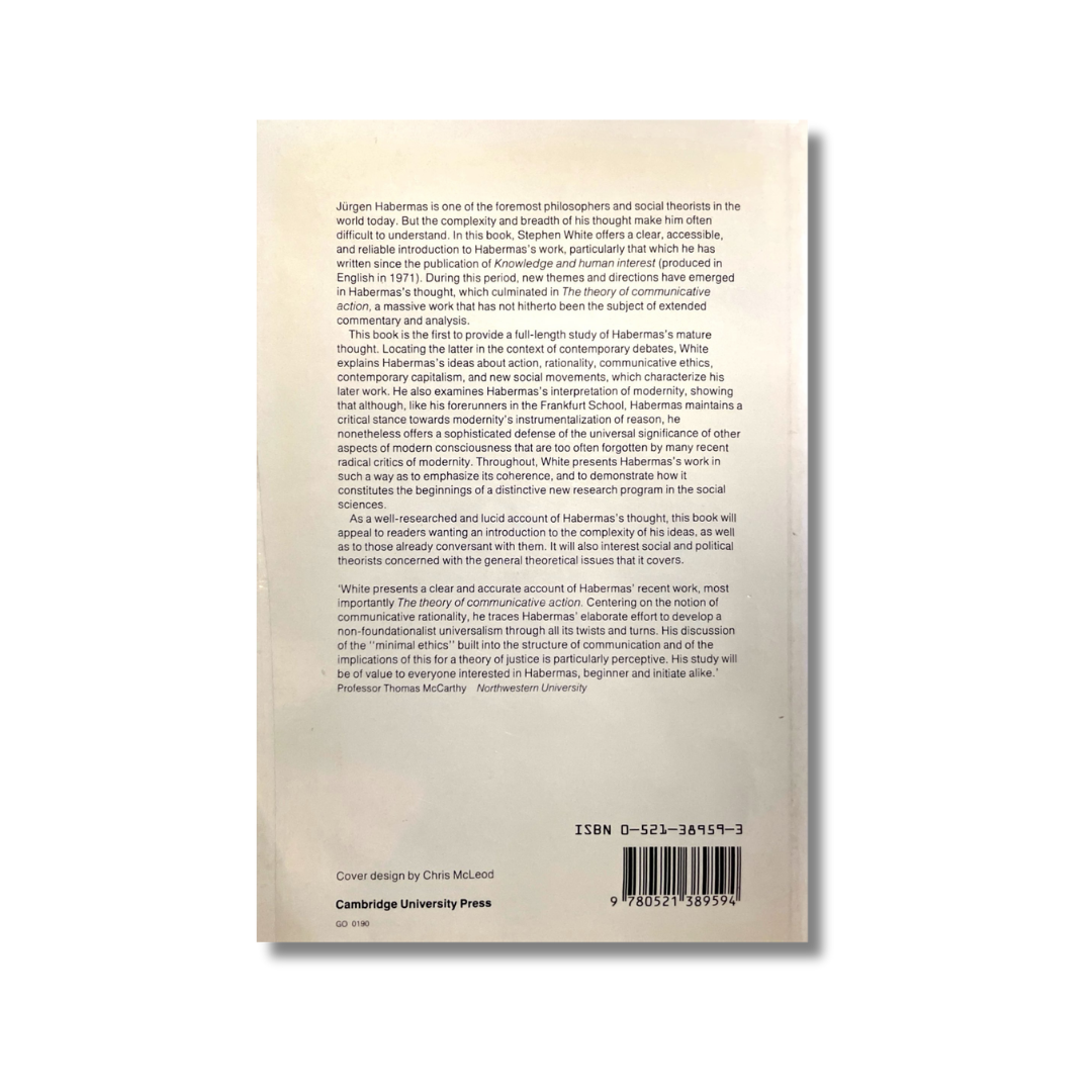 Jürgen Habermas is one of the foremost philosophers and social theorists in the world today, but the complexity and breadth of his thought make him often difficult to understand. This book offers a clear, accessible, and reliable introduction to Habermas' work, particularly that which he has written in the 1970s and 1980s when new themes and directions have emerged in his thought. The author explains the ideas that characterize Habermas' later work, locating them in the context of contemporary debates, and demonstrates how they constitute the beginnings of a coherent and distinctive new research program.