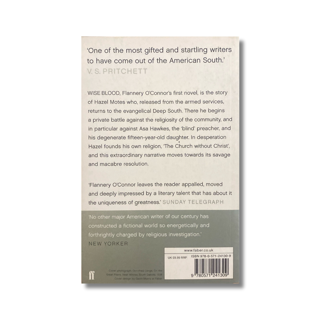 Wise Blood, Flannery O’Connor’s first novel, is the story of Hazel Motes who, released from the armed services, returns to the evangelical Deep South. There he begins a private battle against the religiosity of the community and in particular against Asa Hawkes, the ‘blind’ preacher, and his degenerate fifteen-year-old daughter. In desperation Hazel founds his own religion, ‘The Church without Christ’, and this extraordinary narrative moves towards its savage and macabre resolution.